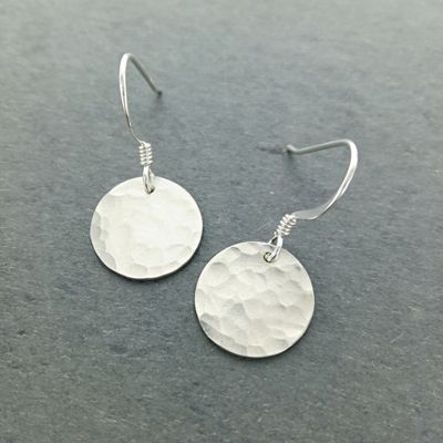 Hammered Circle Earrings: Silver, subtly textured for timeless charm, pairs beautifully with the necklace.